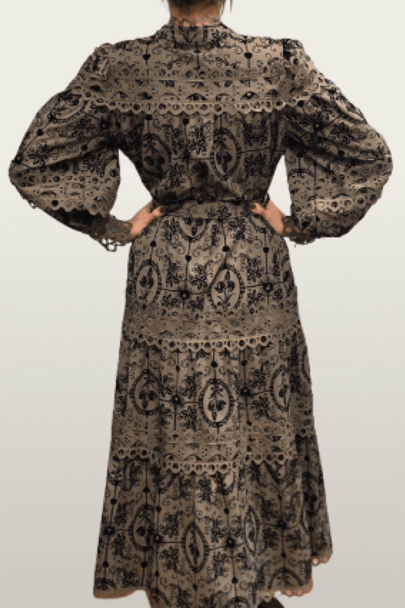 שמלה זימר חאקי תחרה קטיפה ארוכה