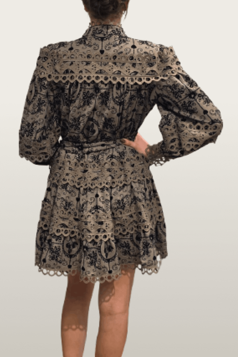 שמלה זימר חאקי תחרה קטיפה קצרה