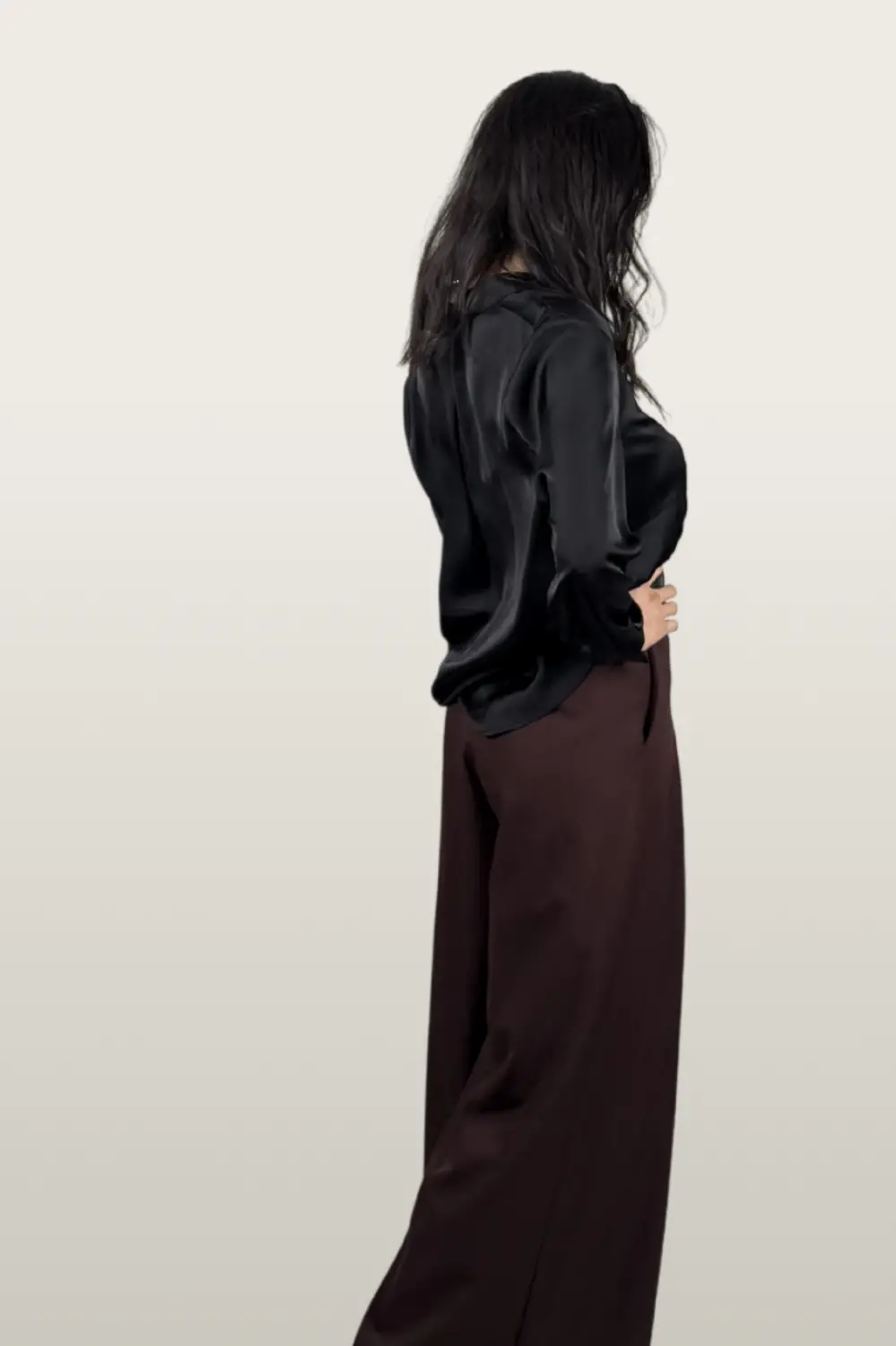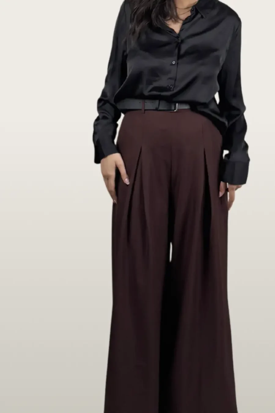 מכנסיים בגזרת TAILLE HAUTE שמדגישה את המותן בצורה מחמיאה, עם רגליים רחבות שיורדות בקו ישר ונקי. הבד נעים, איכותי ונשפך על הגוף ברכות, יוצר מראה אלגנטי ומעודן שמרגיש נכון מבוקר ועד ערב.