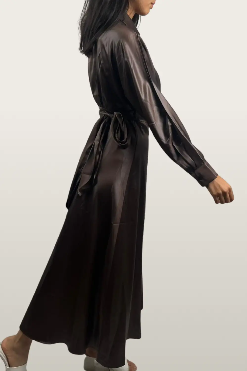 שמלת המעטפה הזו מציגה עיצוב עוצר נשימה בבד דמוי עור ייחודי בעל ברק סאטני יוקרתי, המעניק לה מראה מרשים וחדשני שאין שני לו בארץ. עם גזרת מעטפה מחמיאה ואלגנטית, שמלה זו מבטיחה נוכחות דרמטית ובלתי נשכחת לכל אירוע.